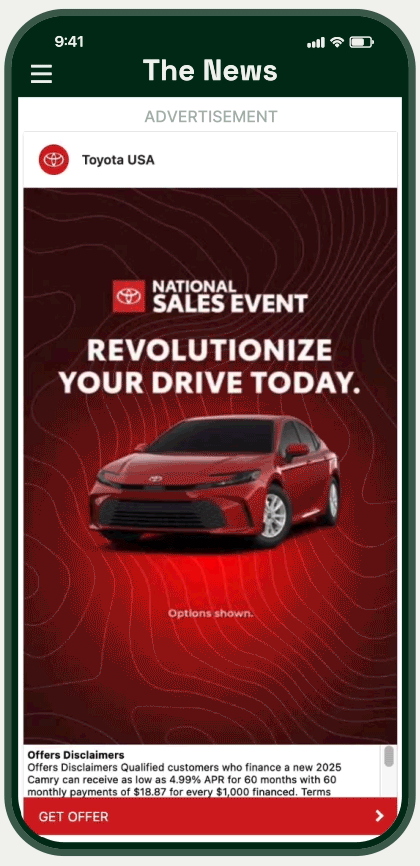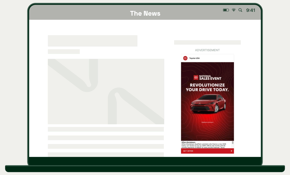 Run across all standard display inventory, including mobile, desktop, and in-app.